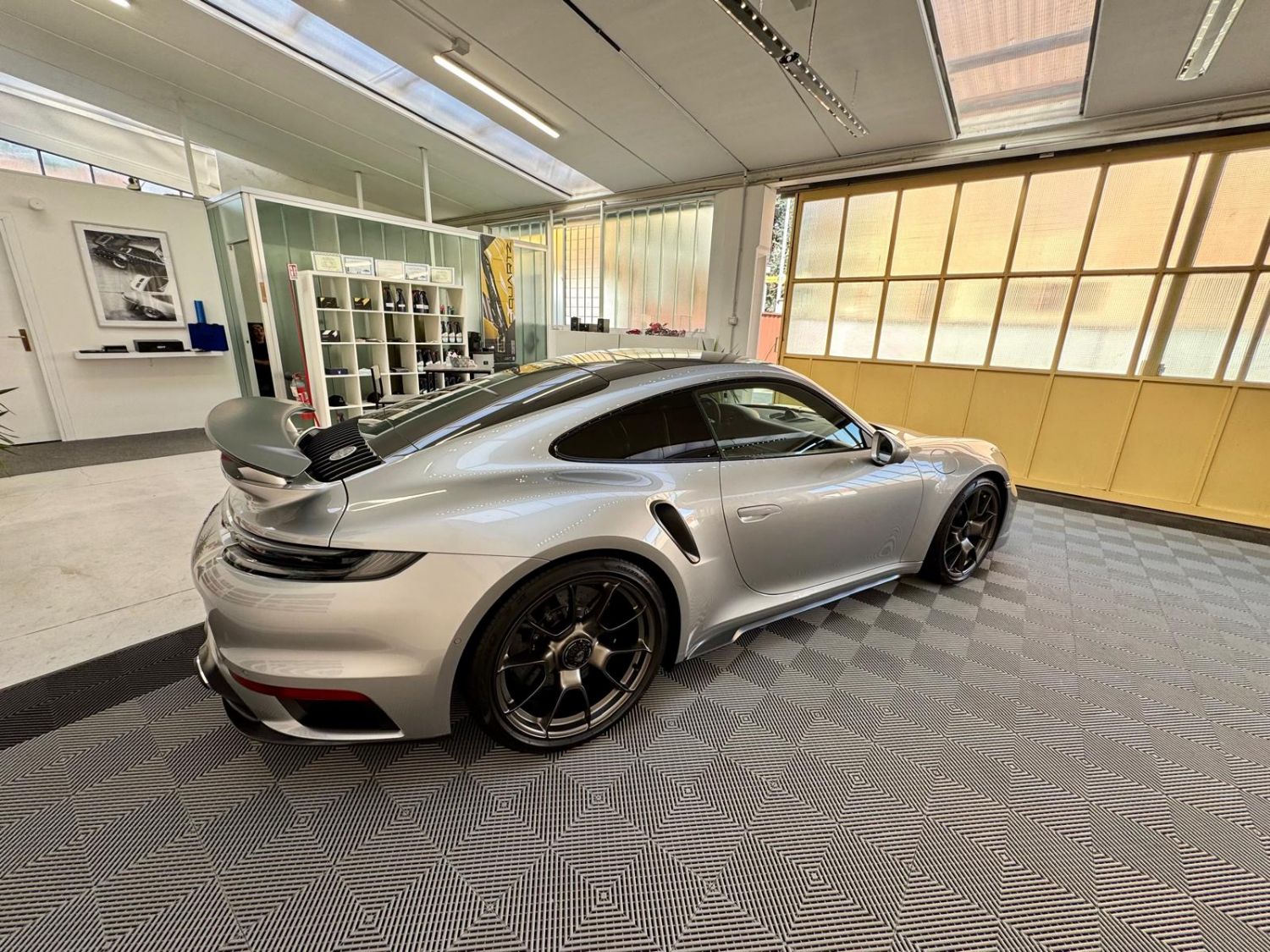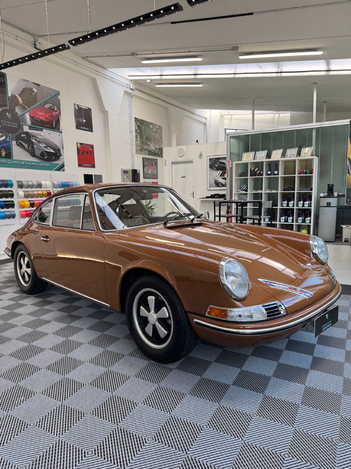 Una Porsche 911T d'epoca in un moderno Atelier di Detailing